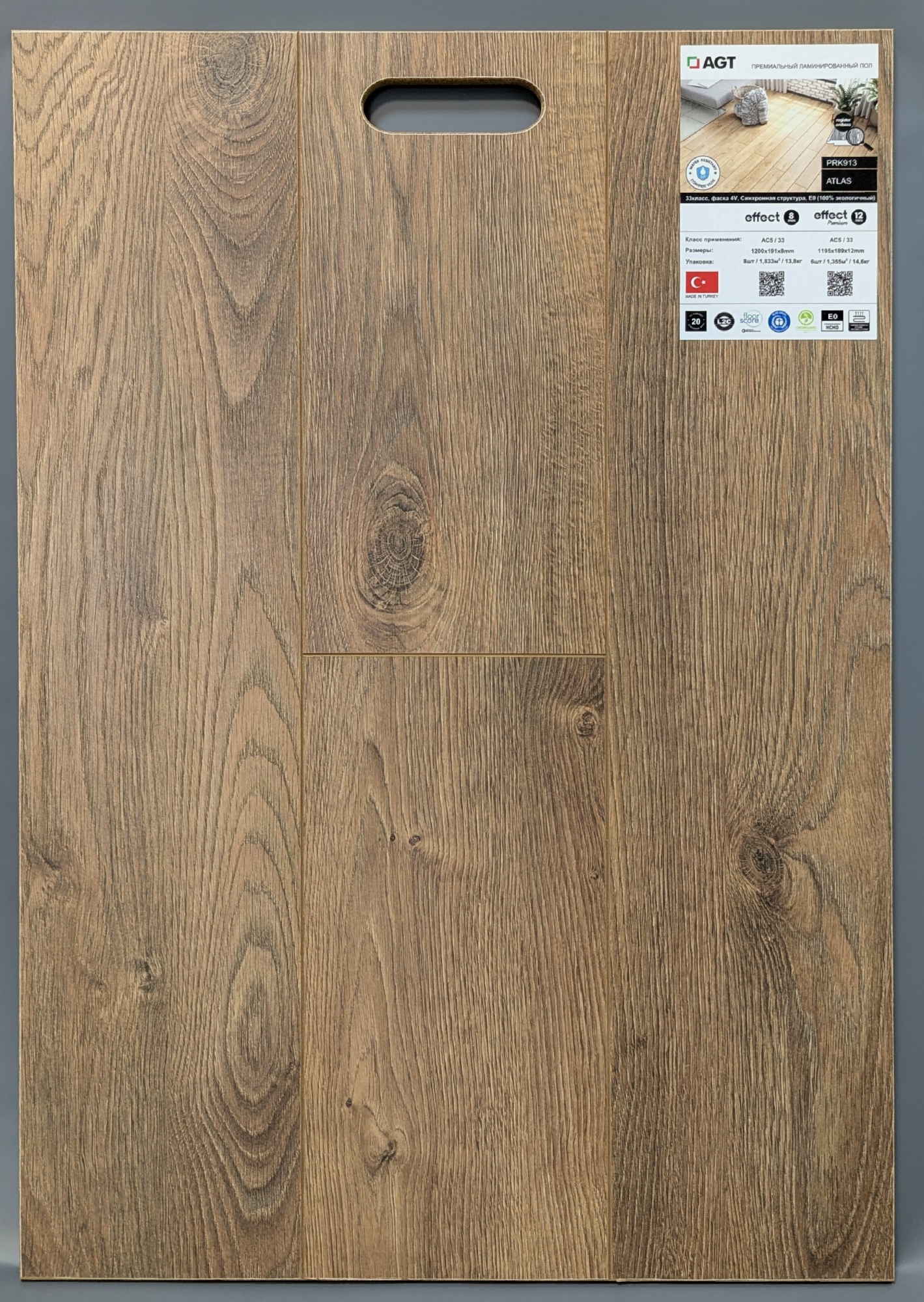 Ламинат AGT Атлас коллекции Effect Elegance – это экологичный и прочный материал для отделки пола. Он производится на турецкой фабрике с учетом немецких технологий и на немецком оборудовании.