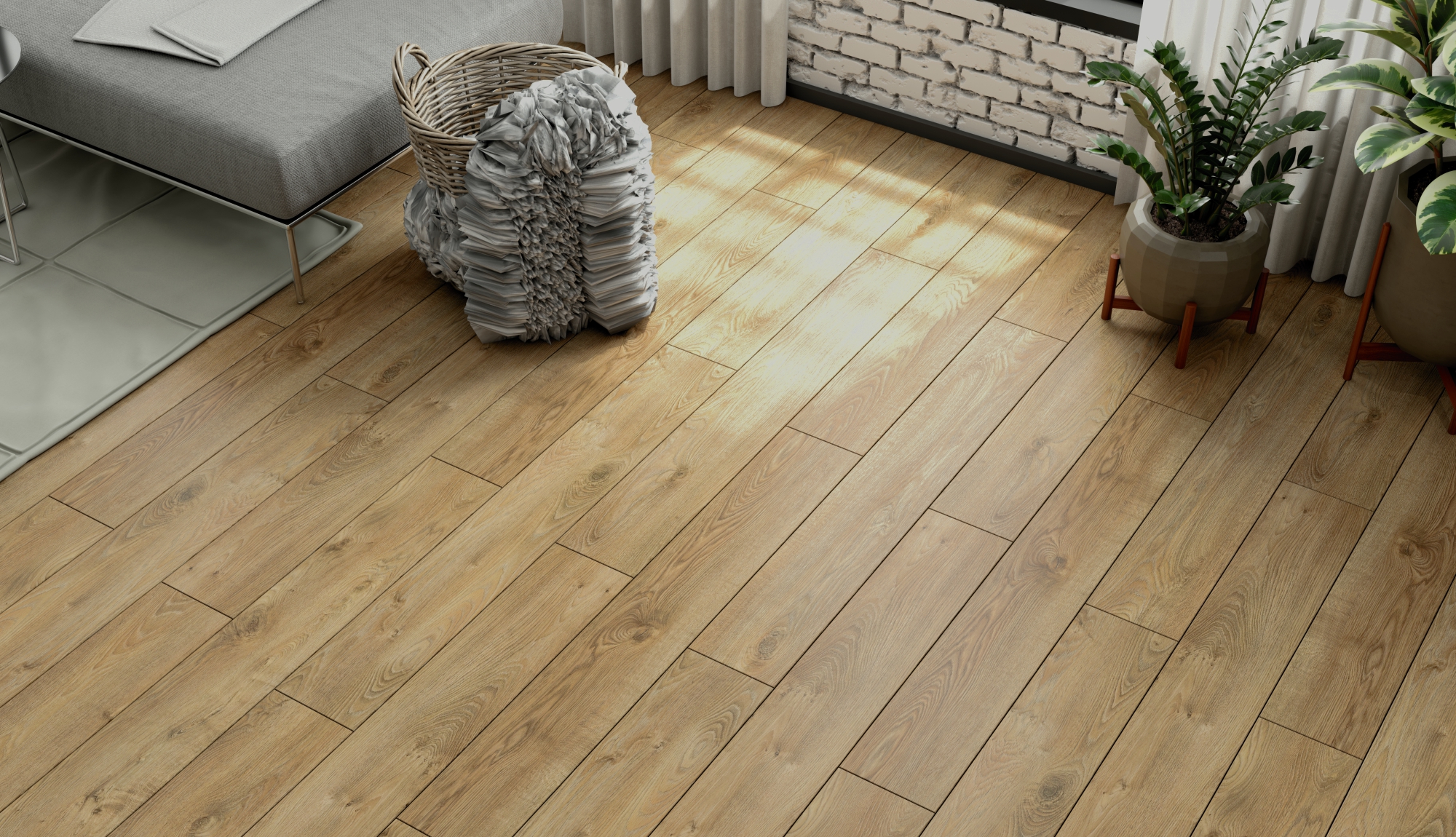 Достоинствами покрытия являются его влагостойкость и износоустойчивость. Ламинату присвоен класс 32 АС4. Он изготовлен из натуральной древесно-волокнистой панели HDF, отличающейся большой плотностью и выдерживающей контакт с водой до 1 часа.