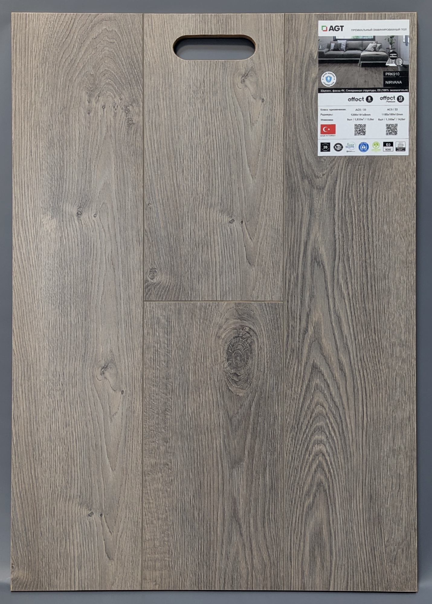 Ламинат AGT Нирвана серии Effect Premium – это качественное напольное покрытие с высоким классом износостойкости 33 АС5. Материал от турецкого производителя изготовлен с учетом немецких технологий и стандартов. Ему гарантировано до 20 лет службы в жилых и коммерческих помещениях, в том числе с теплыми полами.
